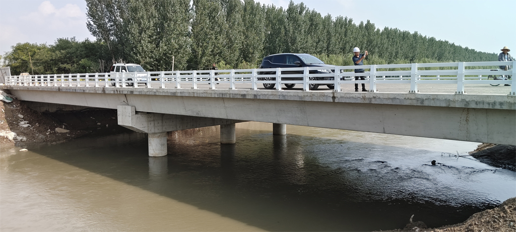 工程简介: 本工程位于蠡县城区段月明河、孝义河刘铭庄桥。建设内容:河道清淤疏浚工程、河岸绿化景观工程、桥梁工程。(1)河道清淤疏浚工程设计月颂桥下游段河道清淤疏浚长度为 1.62km。(2)河岸绿化景观工程河河岸绿化景观工程涉及河岸长度 1.62km。工程共计绿化1.44万㎡,其他新建配套设施包括:新建广场两处,共计 0.25万㎡;历史文化博览墙4 座;游步道0.87km;亲水平台2座,观景平合4 座。(3)本工程新建桥梁 1 座,拆除重建桥梁2座。