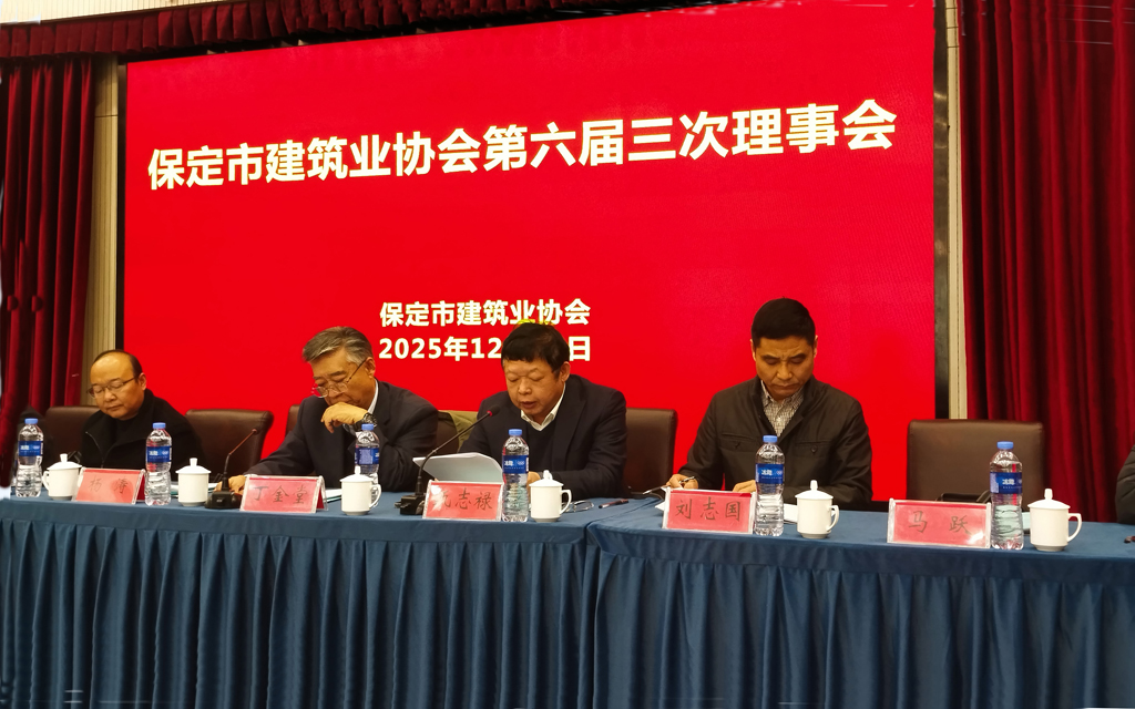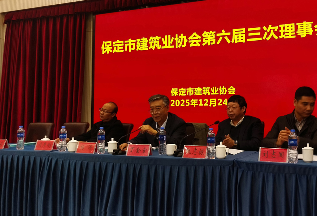 理事会议各项议程完成后,河北省建筑业协会副会长兼秘书长丁金堂讲话,代表省建协对本次理事会的成功召开表示热烈的祝贺。他说,保定市建筑业协会一直是我省地方协会中一支活跃而坚实的力量。多年来,尤其是第六届理事会履职以来,围绕中心、服务大局,主动担当、积极作为,在政策建言、行业自律、企业服务、技术推广、人才培养和交流协作等方面,开展了一系列富有成效的工作。不仅为保定的城市建设和经济发展注入了强大的行业动能,也为全省建筑业协会系统创造了宝贵的经验。省协会对此给予高度认可和赞赏。关于协会下步的工作,他希望保定市建筑业协会:一是勇当转型先锋,在绿色与智能建造上打造新标杆。进一步引领会员企业紧跟时代步伐,在装配式建筑、智能建造、绿色低碳技术等领域大胆探索、积极实践。二是深耕会员服务,在赋能企业成长上展现新作为。继续深入企业一线,精准把脉企业在市场、融资、技术、人才等方面的实际需求。着力构建更高效、更精准的服务平台,促进产业链上下游的融通合作。三是加强自身建设,在提升治理效能上树立新形象。四是坚定发展信心,在创新与实干中铸就新辉煌。他坚信,在市民政、住建等部门的指导下,在广大会员的支持下,保定市建筑业协会一定能团结带领广大会员企业,把握历史机遇,勇担时代重任,不断开创保定建筑业高质量发展的新局面,为奋力谱写中国式现代化建设的河北篇章做出新的更大贡献!