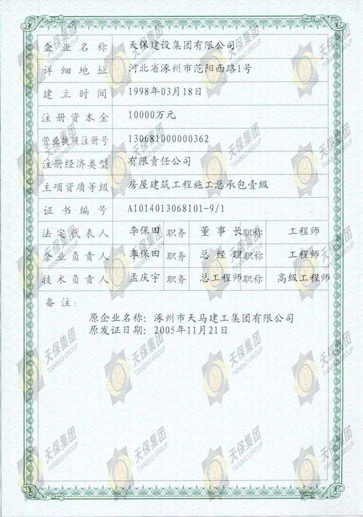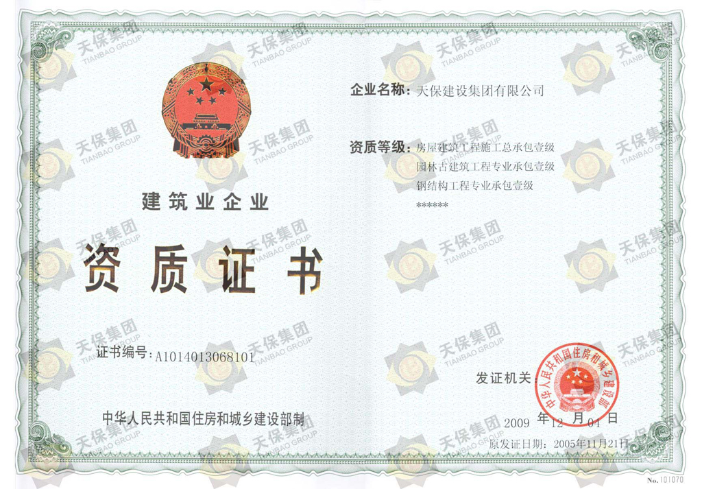 建筑业企业资质证书(正本)