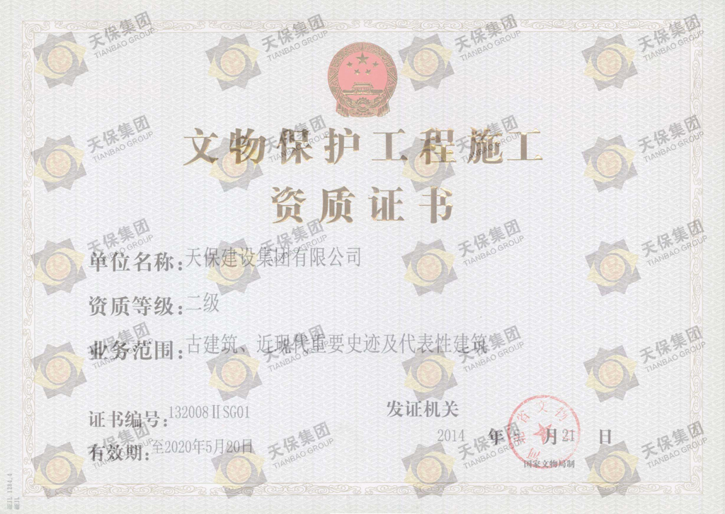 文物保护工程施工资质证书