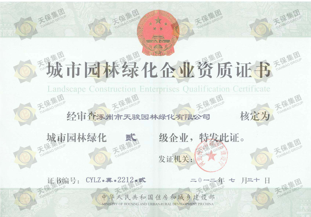 城市园林绿化资质证书