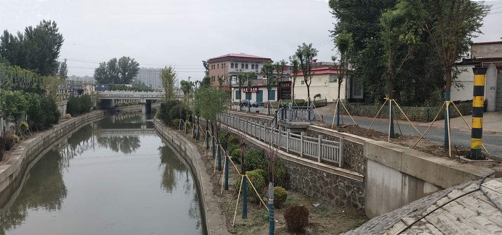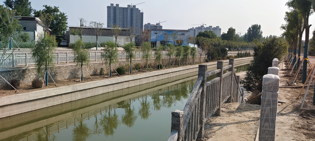 工程简介: 本工程位于蠡县城区段月明河、孝义河刘铭庄桥。建设内容:河道清淤疏浚工程、河岸绿化景观工程、桥梁工程。(1)河道清淤疏浚工程设计月颂桥下游段河道清淤疏浚长度为 1.62km。(2)河岸绿化景观工程河河岸绿化景观工程涉及河岸长度 1.62km。工程共计绿化1.44万㎡,其他新建配套设施包括:新建广场两处,共计 0.25万㎡;历史文化博览墙4 座;游步道0.87km;亲水平台2座,观景平合4 座。(3)本工程新建桥梁 1 座,拆除重建桥梁2座。